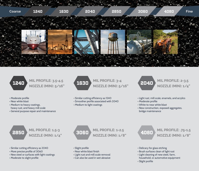 Gets the job done fast! This blasting media is 20% heavier than other mineral slags, with the muscle to cut 15% faster and 20% less product consumption. It’s EPA approved for reuse, so you can stretch your supply even further. This product services a range of applications, from heavy-duty railcar facilities and shipyards to cleaning surfaces clear of light rust and coatings.