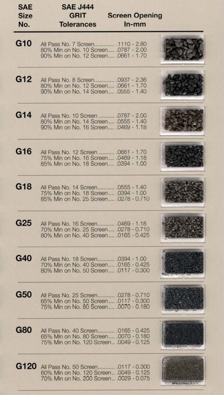 Is made by crushing fully hardened shot, screening the resulting media and tempering it to the desired hardness. Steel grit is ideal for aggressive cleaning applications and will quickly strip many types of surface contaminants from steel and other foundry metals. Because steel grit is softer than aluminum oxide and does not fracture as easily it is ideal for aircraft and aero-space applications. The angular nature of steel grit produces an etched surface on metal for superior adhesion of paint, epoxy, enamel, rubber and other coatings.