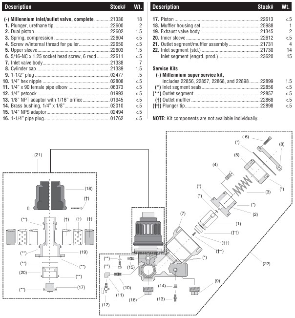 Replacement parts: 22600, 22602, 22604, 22650, 22603, 22611, 21338, 21339, 02477, 02808, 06373, 01993, 01945, 02010, 02494, 01762, 022613, 25988, 21345, 22612, 21731, 21730, 23620, 22899, 22856, 22857, 22868, 22898