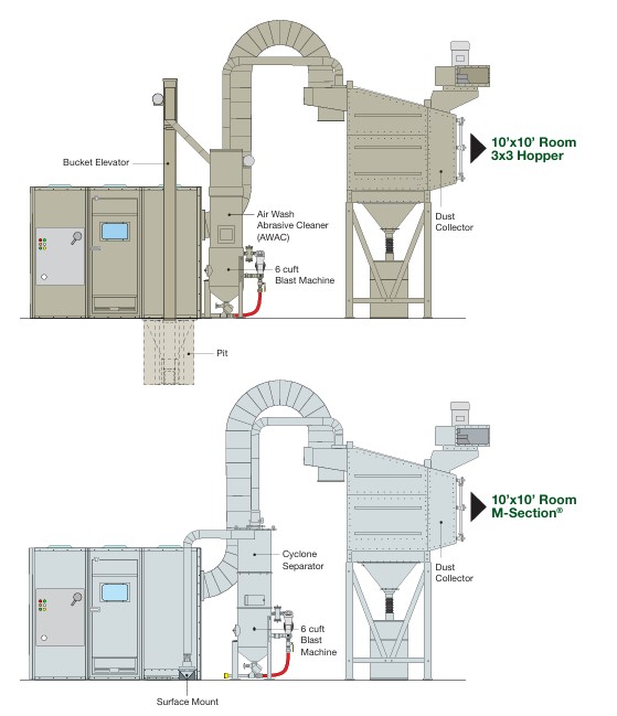 All PDQTM rooms offer you a choice of work doors on one end only or on both ends. For work doors on both ends, a pit-mounted recovery system is required. All PDQTM recovery systems are for partial-area floor recovery.