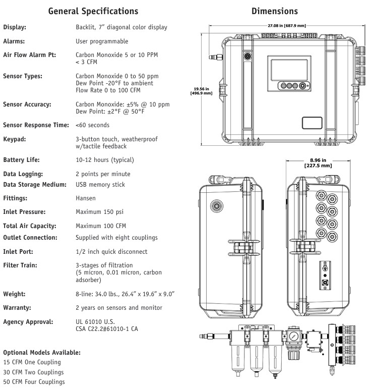 Bullard AirGuard monitors carbon monoxide and dew point monitor or water vapor in your airline keeping breathing air clean and your equipment protected.