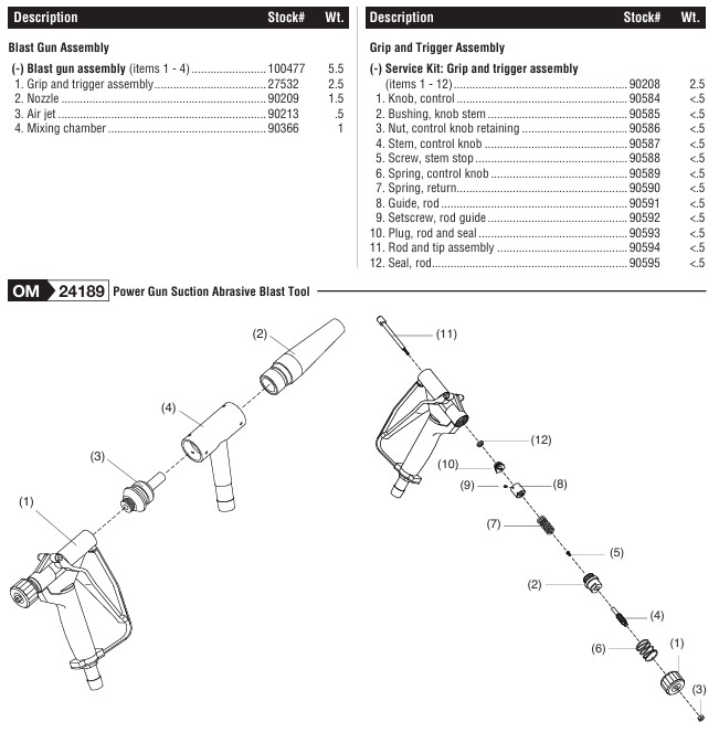 The Clemco Power Gun is a suction blast tool designed for dry abrasive blasting where the air supply is limited or the job is small. The tool is lightweight and compact and ideal where setting up a conventional pressure blast machine would be awkward or inconvenient. The Power Gun can be used with all common media to clean or etch metal, clean masonry, etch glass, and other durable surfaces.