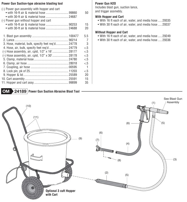 CLEMCO | POWER GUN H2O WITH HOPPER AND CART | 16ft HOSE
